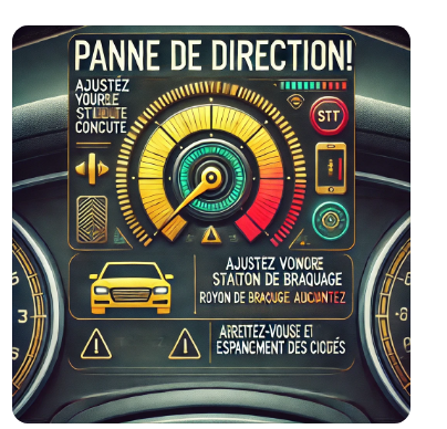 Lorsqu’un problème lié à la direction du train arrière se manifeste, un témoin de direction s’allume sur le combiné d’instruments, accompagné d’un message d’alerte. Les signaux peuvent varier selon la gravité de l’incident :