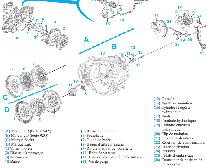 - Embrayage : Remplacement de l’embrayage, réglage, et diagnostic.