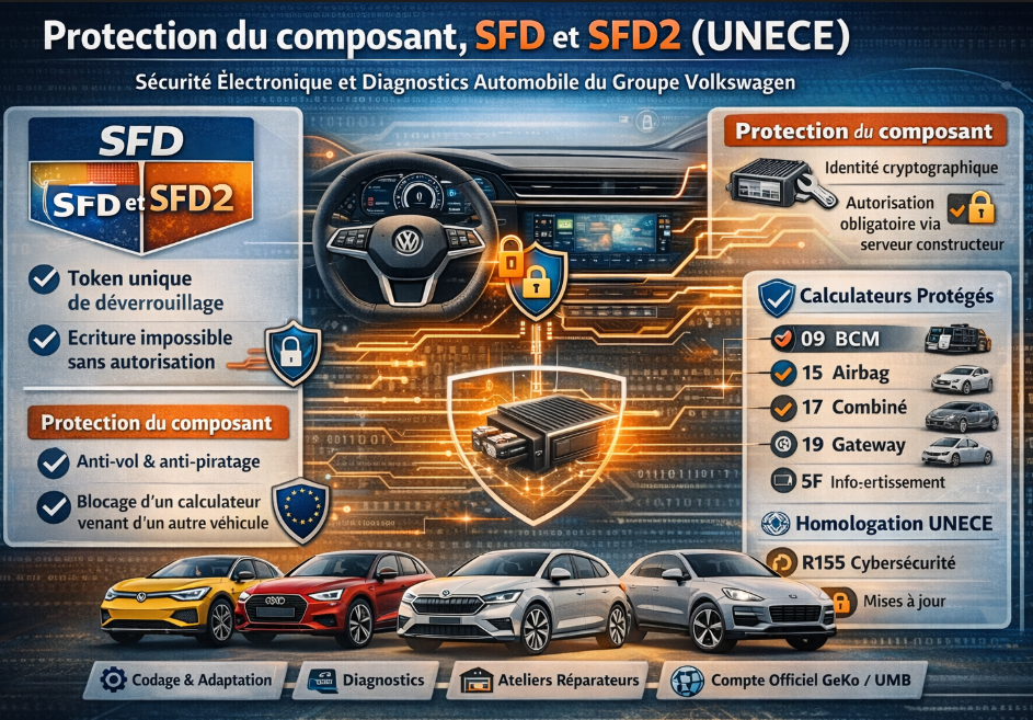 La protection du composant, le SFD et le SFD2 (avec UNECE) transforment profondément le diagnostic automobile du groupe Volkswagen.